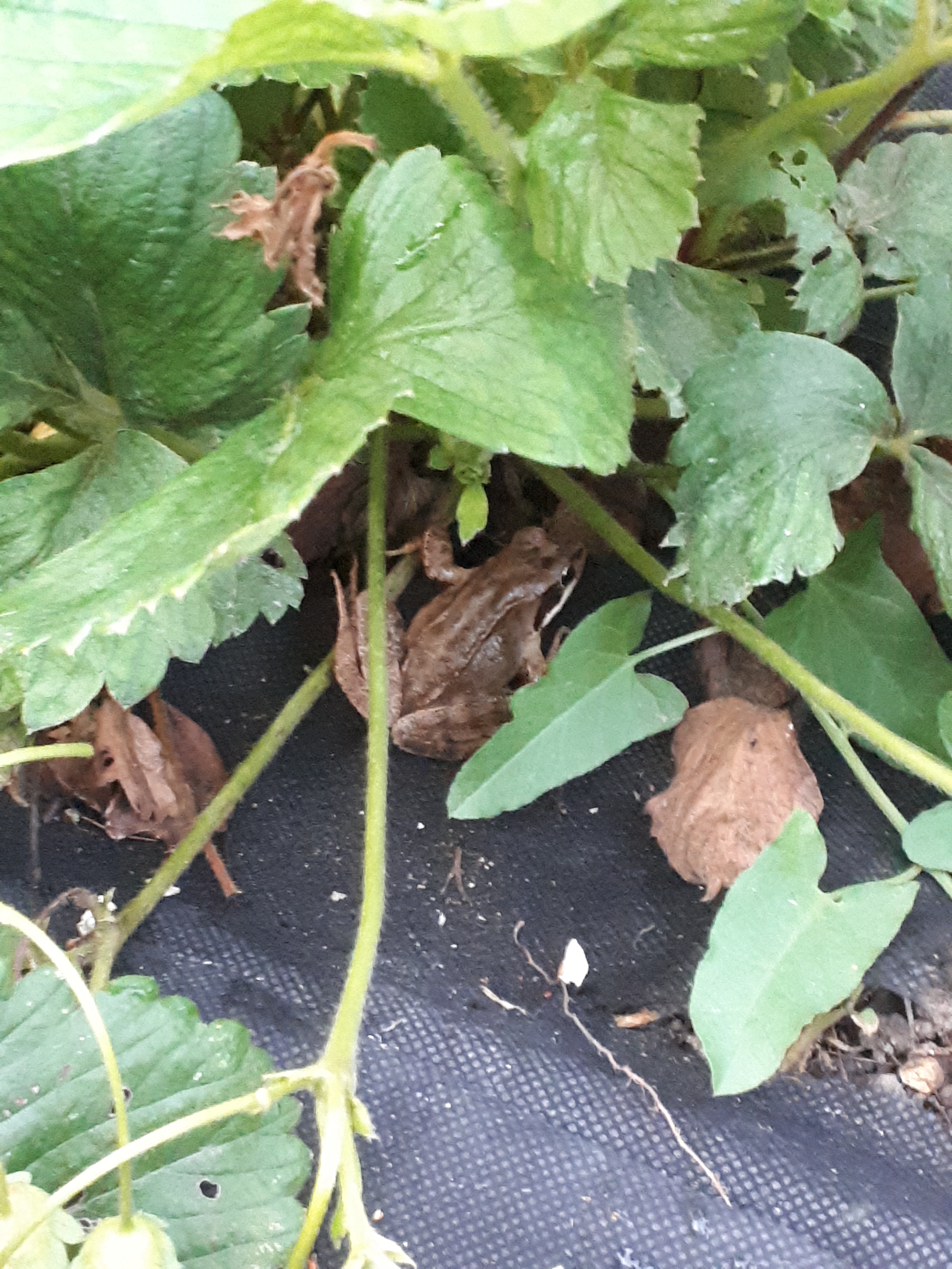 Après la libellule, la sauterelle, les lézards voila la grenouille au milieu des fraises
